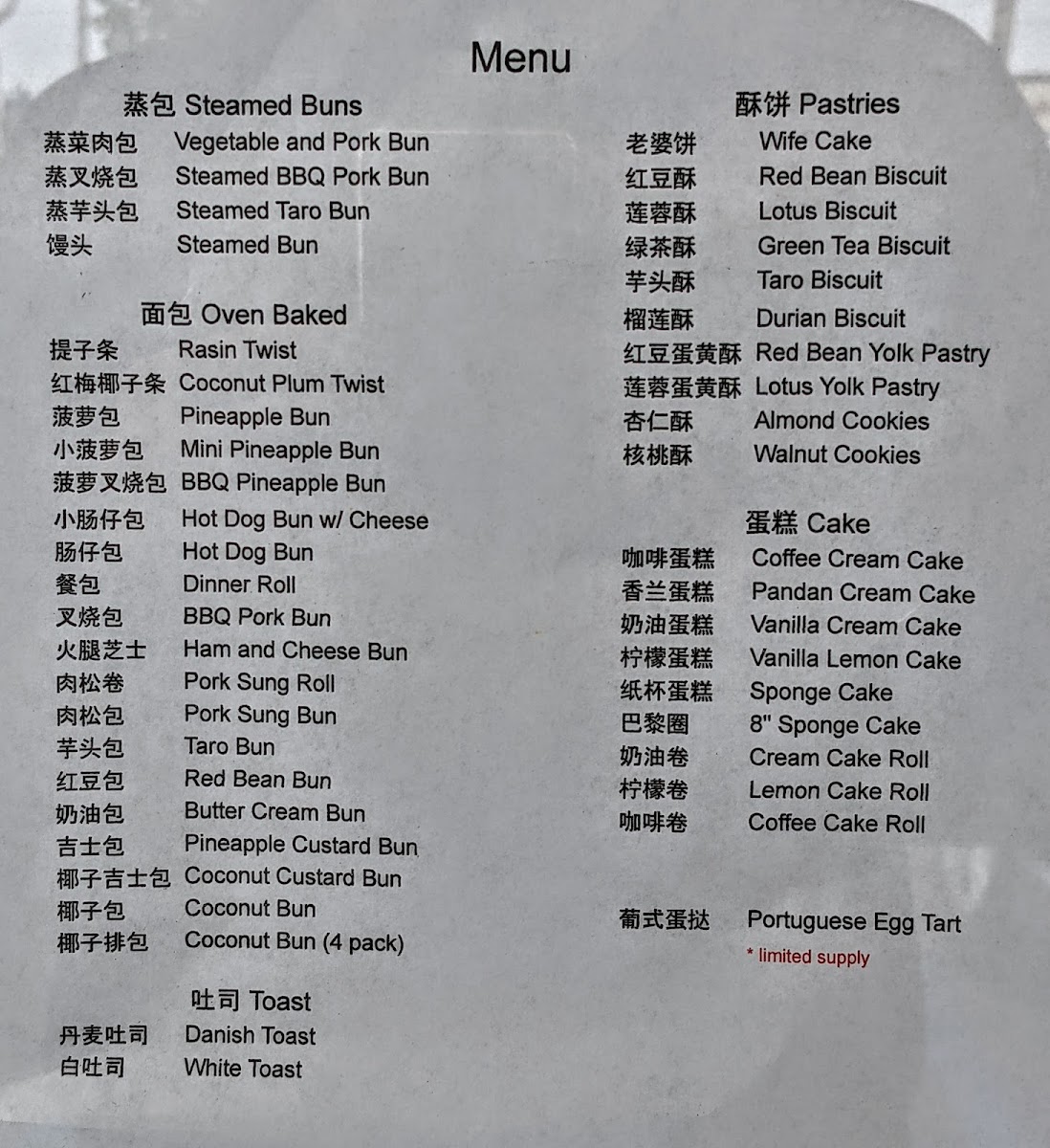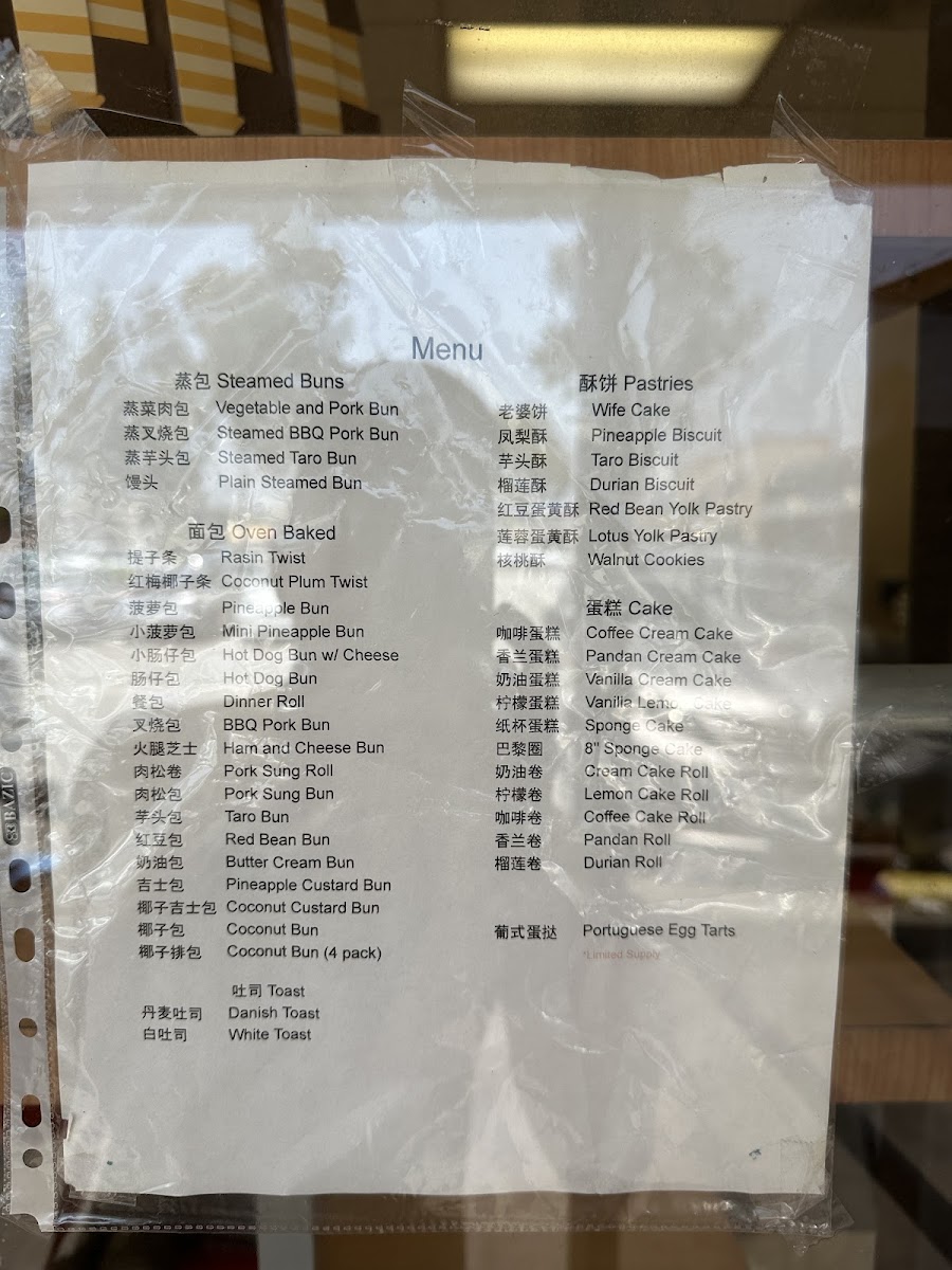 Welcome to Phu's Bakery, a hidden gem on 9008 Garvey Ave in Rosemead, CA, specializing in authentic Chinese baked goods that have garnered local attention. The menu features delightful options, including 蒸包 (Steamed Buns), particularly the savory 蒸菜肉包, and their renowned Portuguese Egg Tarts, which some patrons rave are less oily and sweeter than those from competitors.